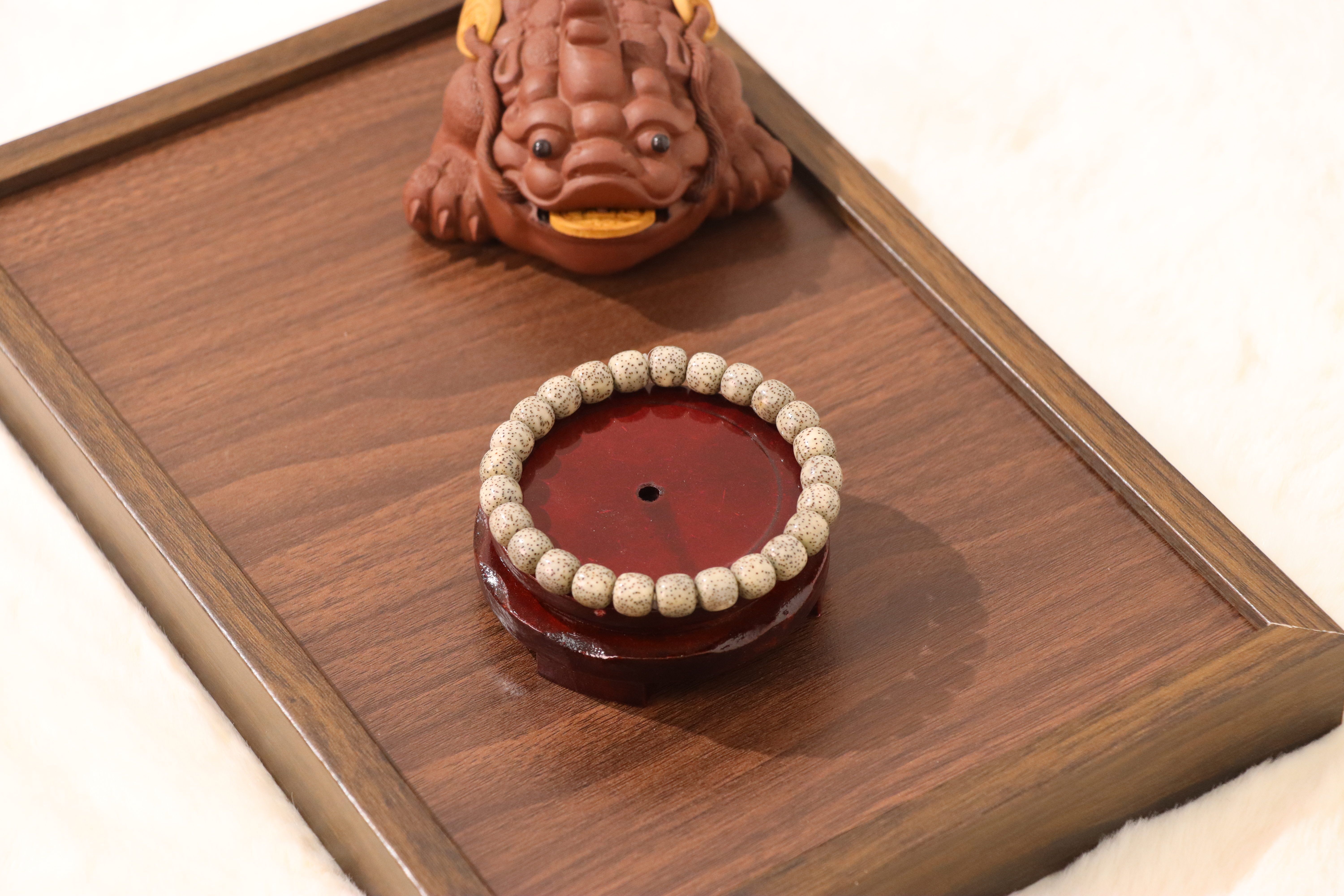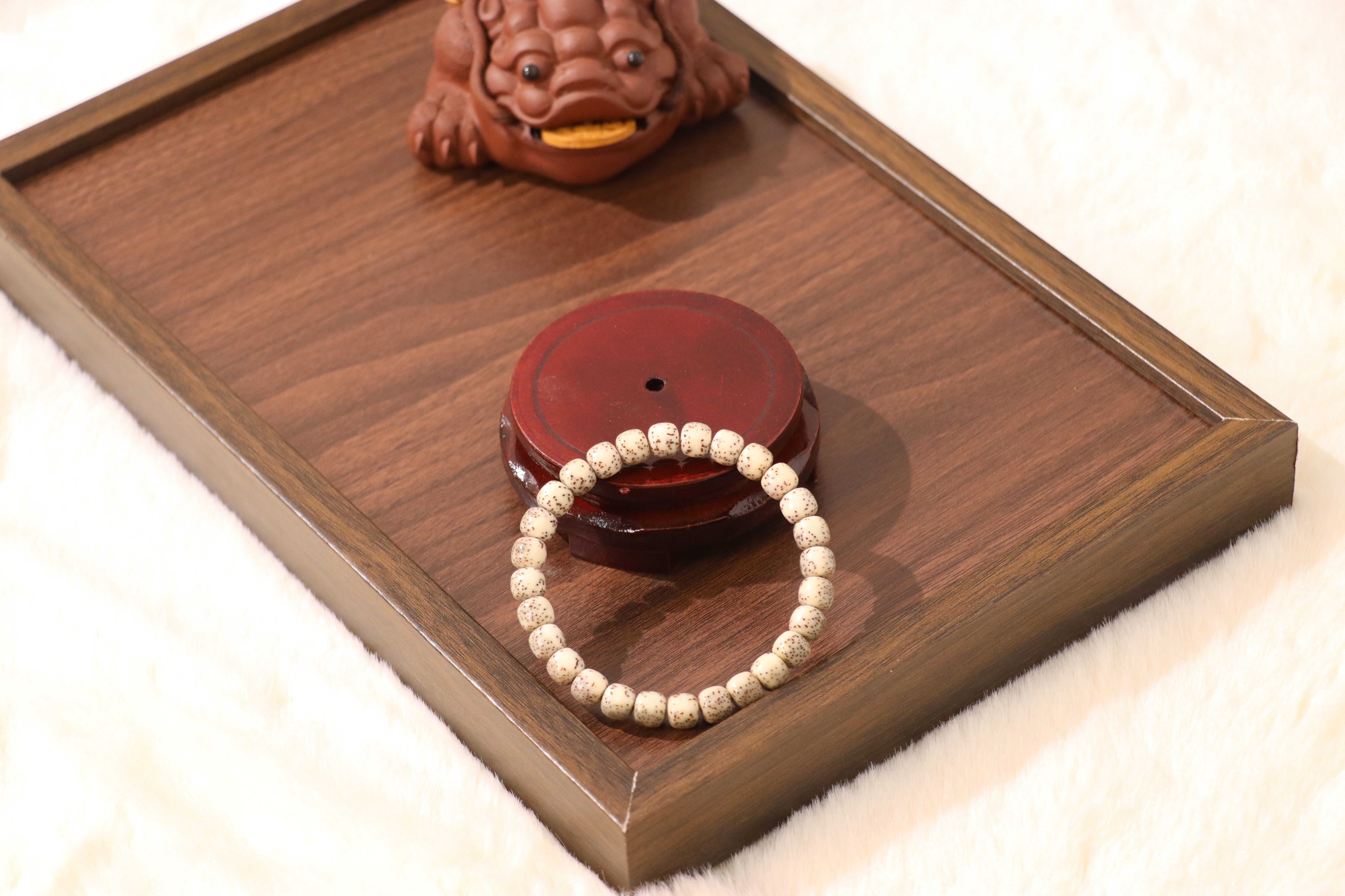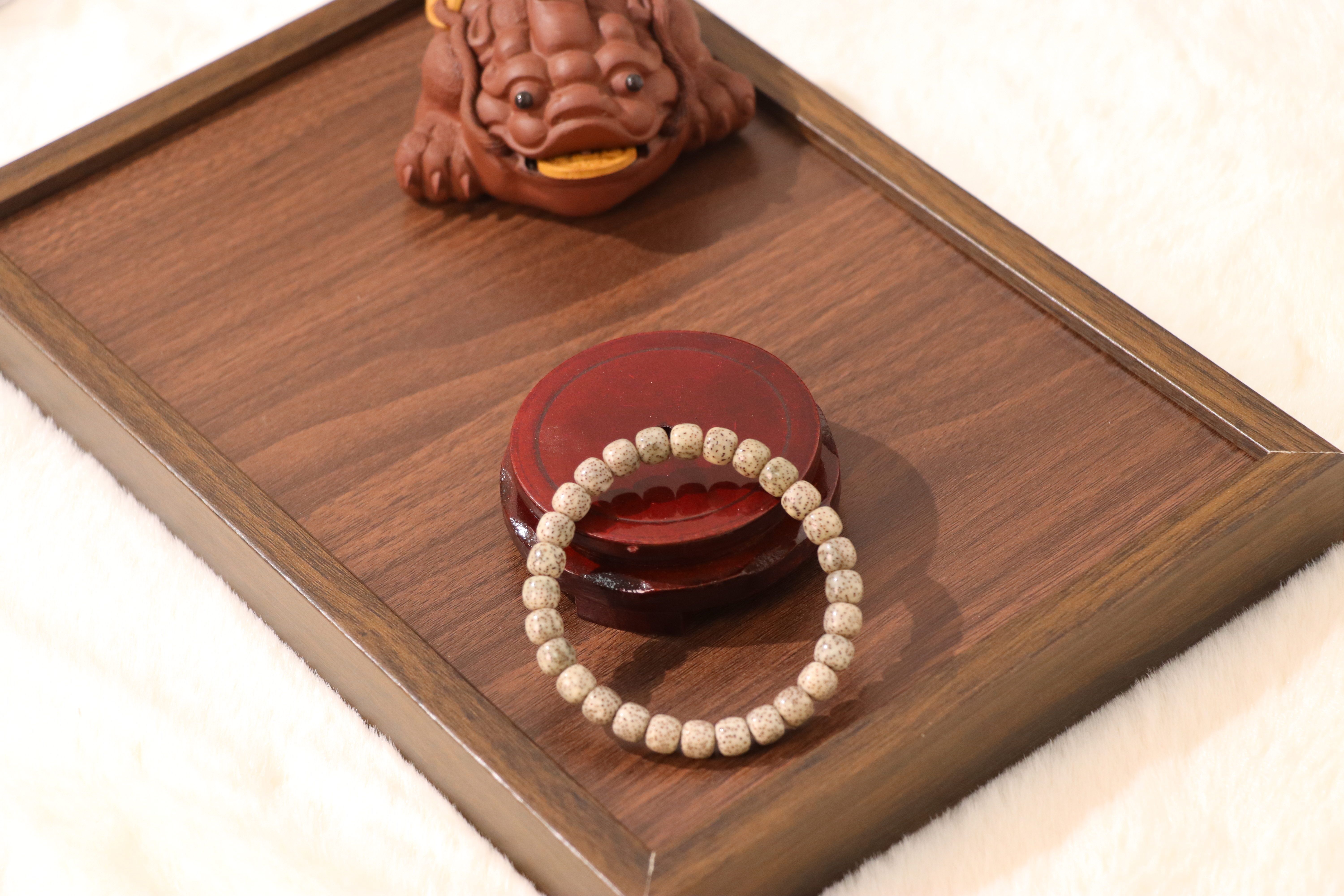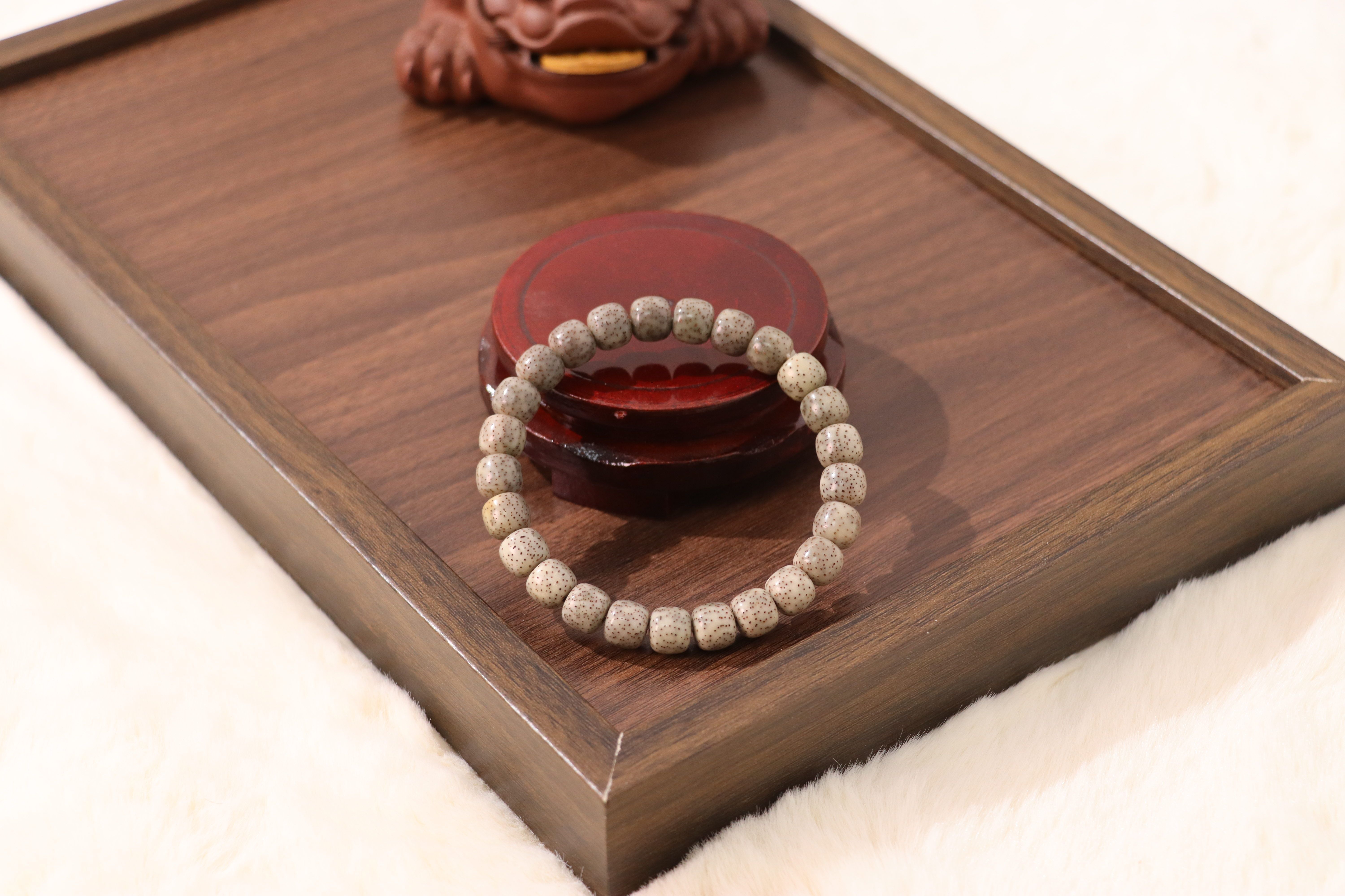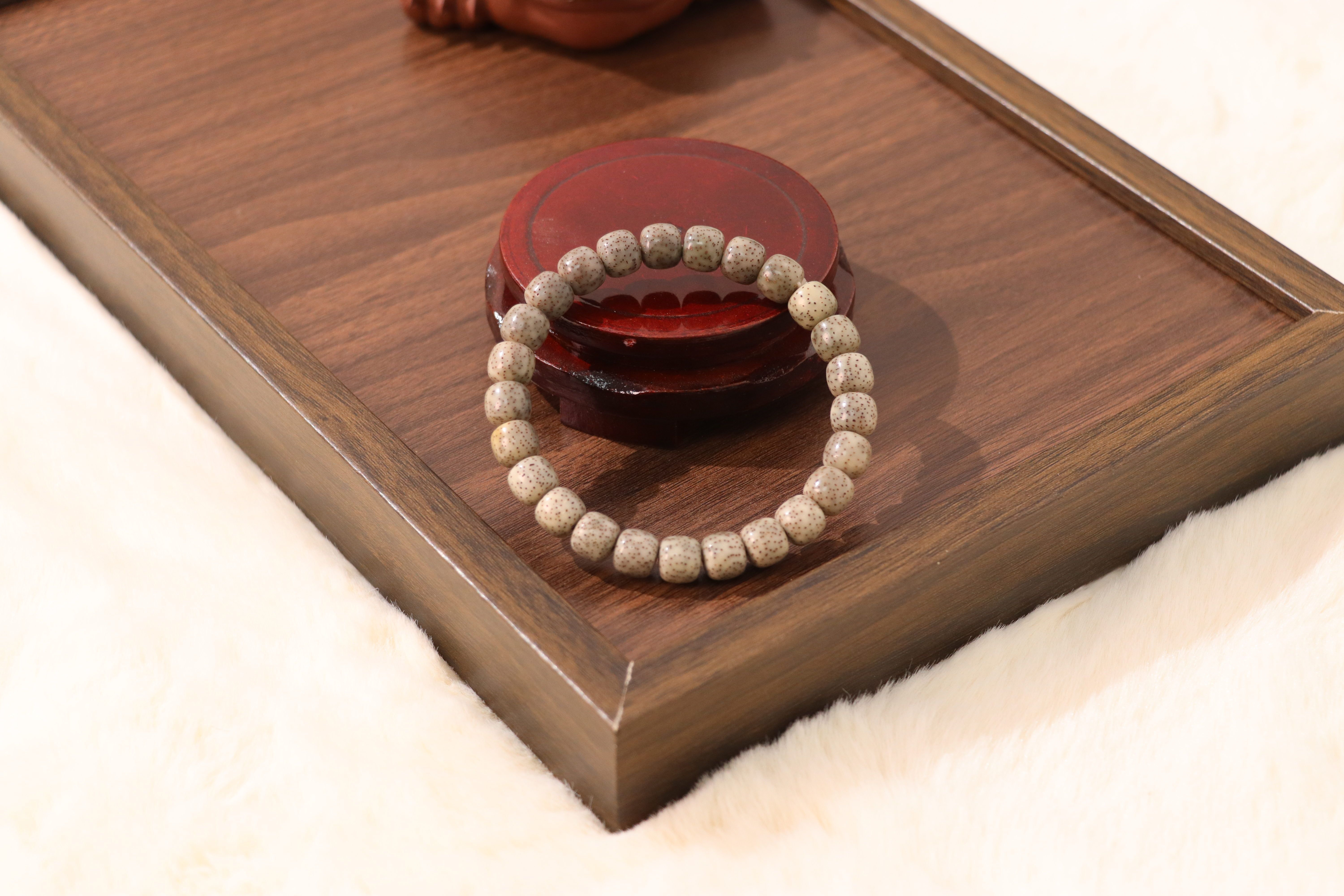 These seeds are carefully selected, aged, and meticulously hand-polished to achieve their signature smooth texture and rich, warm tone. The process enhances the natural patterns of the seeds, making every bead unique and full of character.